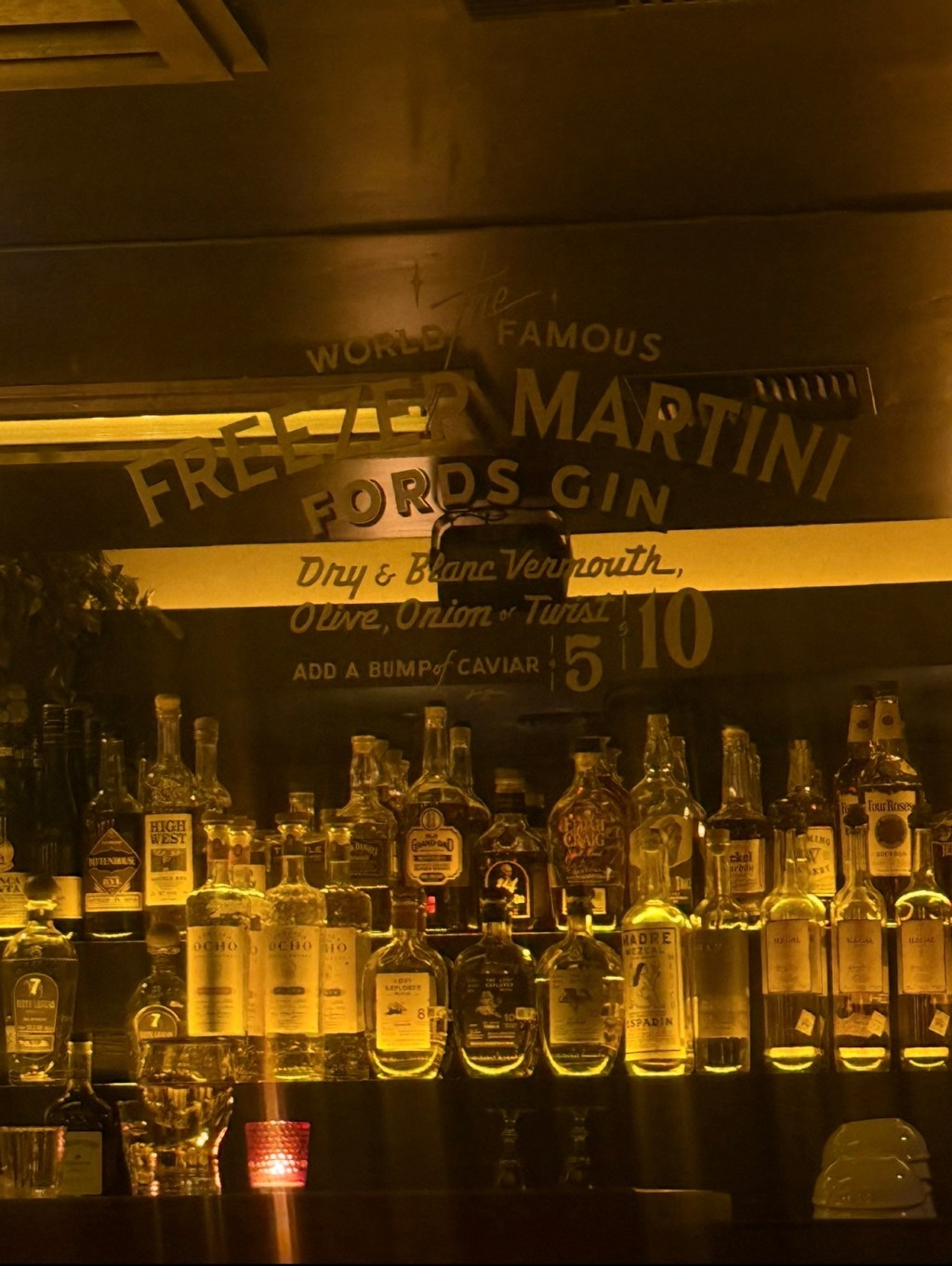 Dim lighting glowing like honey.